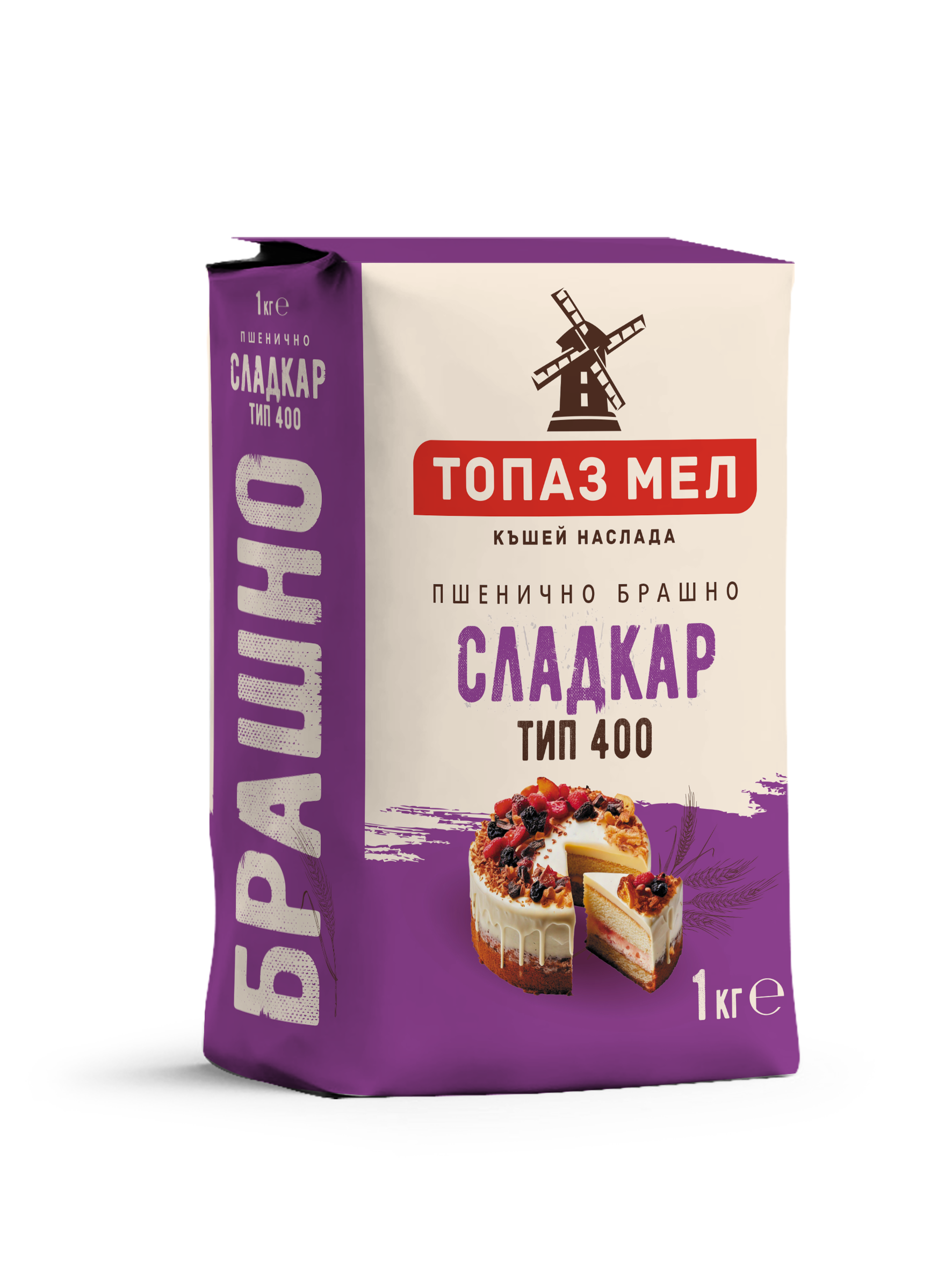 Висококачествено Пшенично Брашно Сладкар за домашни сладкиши и печива. Брашно тип 400 Сладкар на Топаз Мел се добива от сърцевината на пшеничните зърна, без участието на външните им слоеве – затова брашното е много БЯЛО и ФИНО.